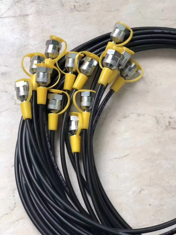 2、破碎錘高壓油管管體上附加護簧,避免管路之間互相磨檫致使油管外膠層損壞。