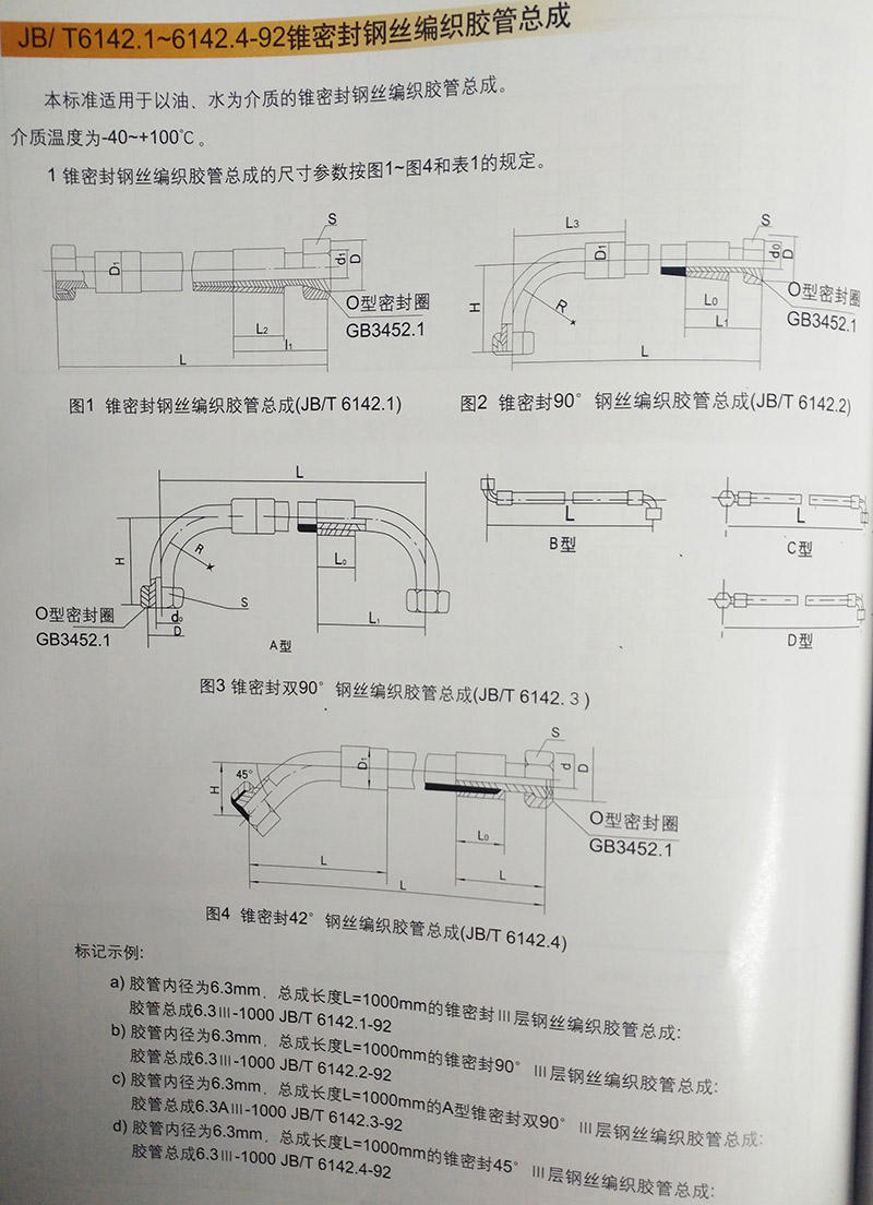 JB/T6142.1~6142.4-92錐密封鋼絲編織膠管總成: