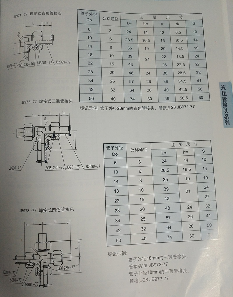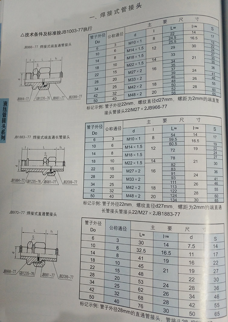焊接式管接頭:焊接式管接頭適用介質:油、水、氣等非腐蝕性或腐蝕性介質.對焊接式密封管接頭,配用鋼管的規格要求比較靈活,與管道焊接后,具有連接牢靠、密封性能好等特點,因而在煉油、化工、輕工、紡織、國防、冶金、航空、船舶等系統中被廣泛采用;也適用于各種機械工程、機床設備等液壓傳動管路。當卡套式管接頭生產還不能滿足需要時,以及在腐蝕較強的場合,可優先考慮采用。