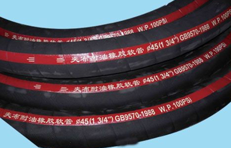 產品名稱:耐油夾布膠管 產品結構:耐油夾布膠管是由良好NBR內膠層、多層纏繞或編織增強層、中間連接膠層、耐磨耐老化外膠層(如果有導靜電需要,內膠層可選導電炭黑增強或在膠管內置導電銅線)。 產品特點:耐油夾布膠管具有內外徑公差小、內膠層耐非極性礦物油性能好,不會產生溶脹現象;管體柔軟經久耐用等優點。 產品用途:耐油夾布膠管可輸送汽油、柴油、潤滑油、齒輪油、液壓油、煤油等極性油。產品結構設計合理、質量優良、堅固耐用,是一種用來輸送各種液體粘流體和粉狀固體等物料介質的柔性膠管。